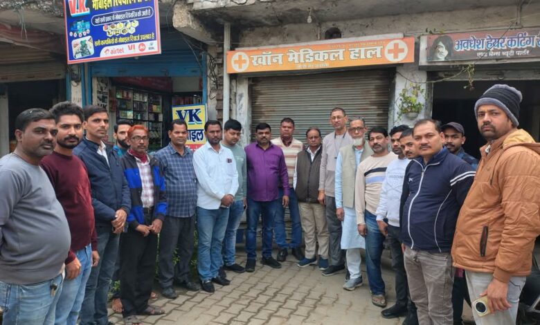 चंदौली:मेडिकल स्टोर संचालक रोहिताश पाल की हत्या के विरोध में मेडिकल दुकानों पर शटडाउन,शोक सभा में दी श्रद्धांजलि