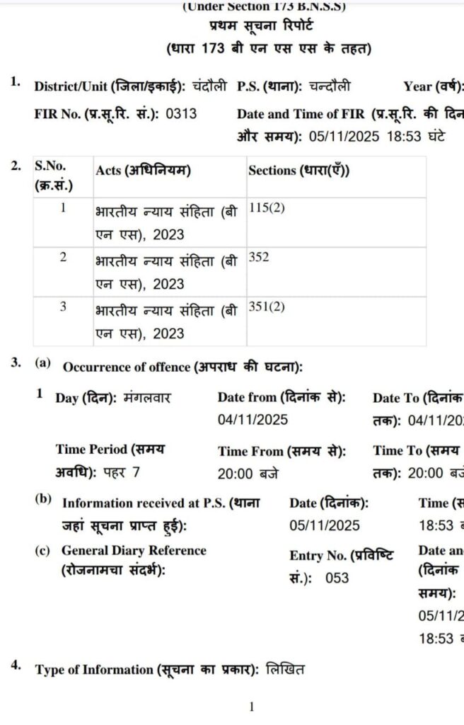 चंदौली। जनपद चंदौली के सदर कोतवाली क्षेत्र में मंगलवार रात राज रसोई रेस्टोरेंट में भोजन के बाद बिल के भुगतान को लेकर विवाद हो गया। शिकायत के अनुसार, होटल मालिक और उनके कर्मचारी चार लोगों पर मारपीट करने लगे, जिससे वे लहूलुहान हो गए।घायलों ने डायल 112 को सूचना दी। पुलिस मौके पर पहुंची और दो गंभीर रूप से घायल व्यक्तियों को जिला अस्पताल में भर्ती कराया। चिकित्सकों ने स्थिति गंभीर होने पर उन्हें ट्रॉमा सेंटर रेफर कर दिया।पुलिस अधीक्षक आदित्य लांग्हे ने मामले का संज्ञान लेते हुए होटल मालिक धर्मेंद्र सिंह, उनके पुत्र और कर्मचारियों के खिलाफ मुकदमा दर्ज कर जांच शुरू कर दी।