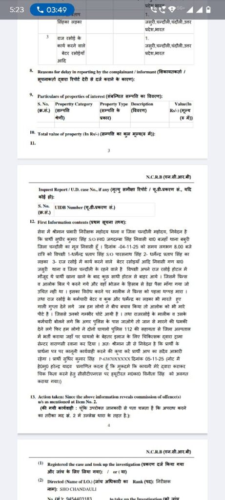 चंदौली:राज रसोई रेस्टोरेंट में मारपीट,पुलिस ने मुकदमा दर्ज किया