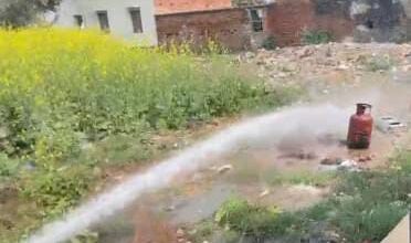 खाना बनाते समय गैस सिलेंडर में लगी आग,मची अफरातफरी,फायर बिग्रेड की टीम ने आग पर पाया काबू।