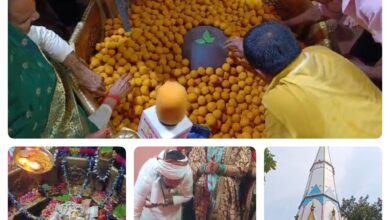चंदौली-चकिया बाबा जागेश्वरनाथ धाम पर श्रद्धालू ने ढाई कुंतल लडडू से उनका शृंगार किया।