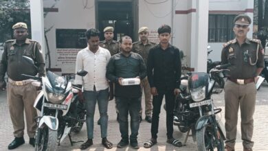 राहगीरों से मोटरसाइकिल लूट की घटना को अंजाम देने वाले तीन शातिर अभियुक्त गिरफ्तार,लूट की दो मोटरसाइकिल बरामद।