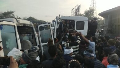 Chandauli News-मझवार रेलवे स्टेशन के पास ट्रेलर–ट्रक की टक्कर,चालक केबिन में फंसा,किया गया रेस्क्यू