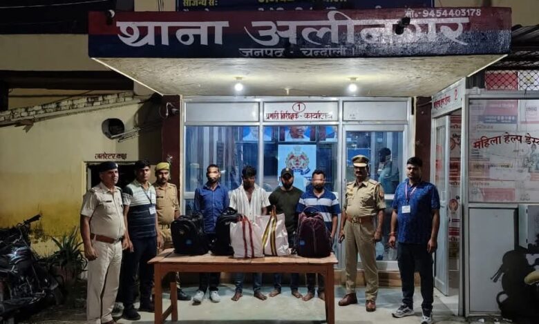Chandauli News-अलीनगर पुलिस व आरपीएफ की संयुक्त कार्रवाई में 21.48 लीटर अवैध अंग्रेजी शराब बरामद,चार गिरफ्तार