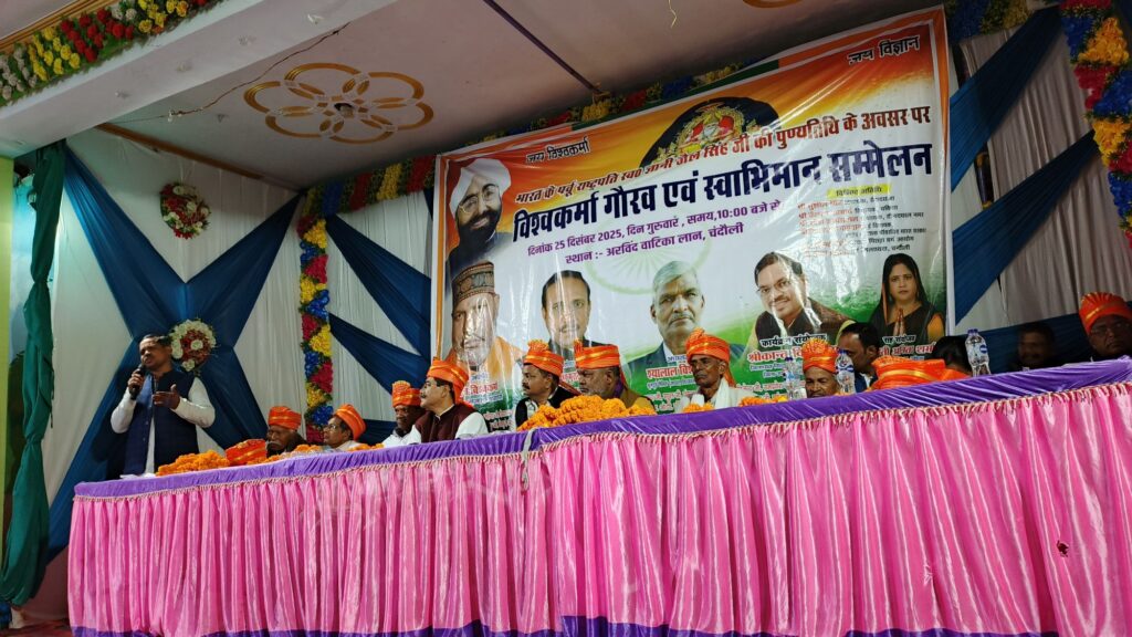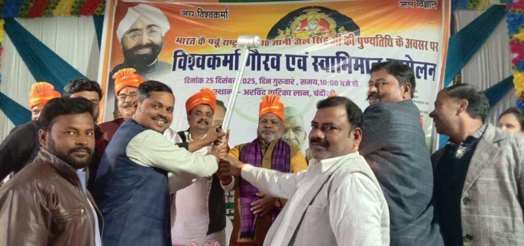 Chandauli News-पूर्व राष्ट्रपति स्वर्गीय ज्ञानी जैल सिंह की पुण्यतिथि पर चंदौली में स्वाभिमान सम्मेलन,विश्वकर्मा समाज के सम्मान व अधिकार पर हुआ विचार