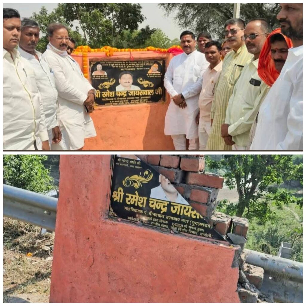 Chandauli News-शिलान्यास स्थल तोड़े जाने पर आक्रोश,जिला पंचायत सदस्य का कड़ा विरोध