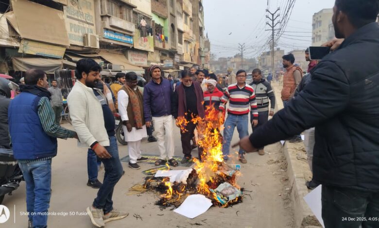 Chandauli Nrws-बांग्लादेश में दीपू दास की हत्या के विरोध में डीडीयू नगर में उबाल,राष्ट्रीय हिन्दू फ्रंट का जोरदार प्रदर्शन